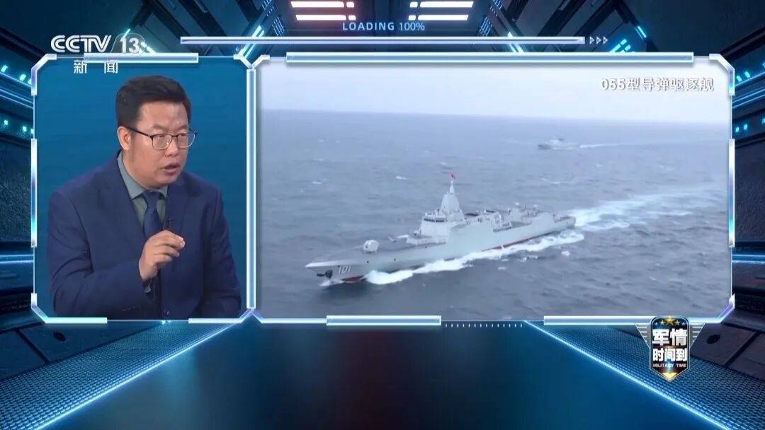 总台军事观察员 魏东旭:在航母编队的兵力构成当中,055这种万吨级别的大型驱逐舰可以说是全能战士,攻防能力都很强。虽然排水量超过1万吨,但是它采用了整体隐身化的设计理念,可以把雷达反射信号降到一个最小值。而且055这种万吨级别的大型驱逐舰,它配备多部的相控阵雷达,可以更好地感知任务环境。针对空中目标和海上目标的探测能力,识别的精准程度都是很强的。