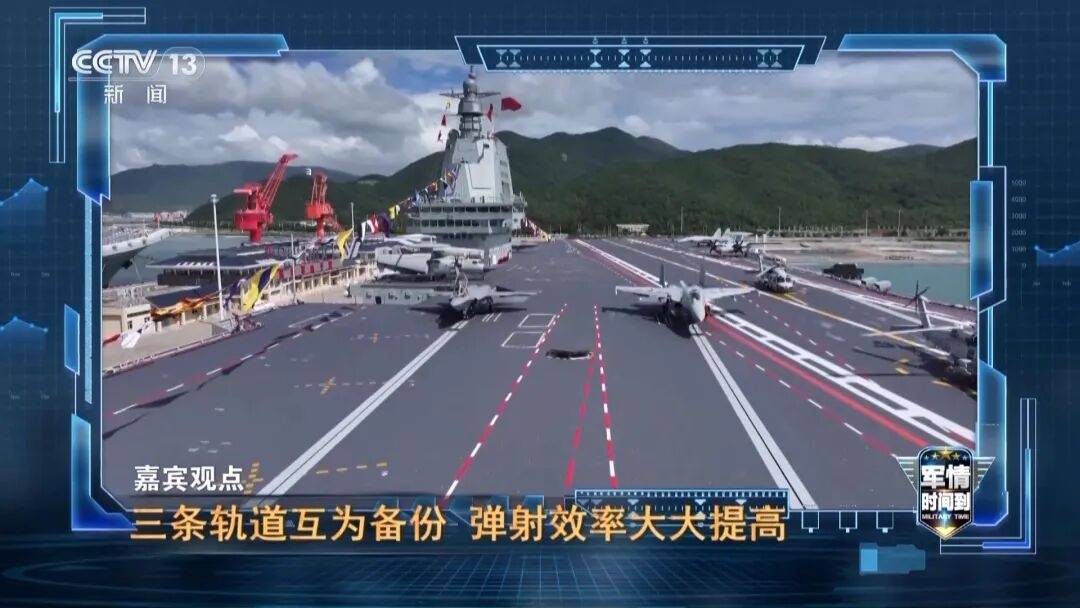 总台军事观察员 魏东旭:三条电磁弹射轨道,就是要保证在单位时间内,弹射舰载机的效率进一步提升。更重要的是三条轨道互为备份。无论是在维修和保养的过程当中,舰载机的这种任务执行能力不受任何影响。